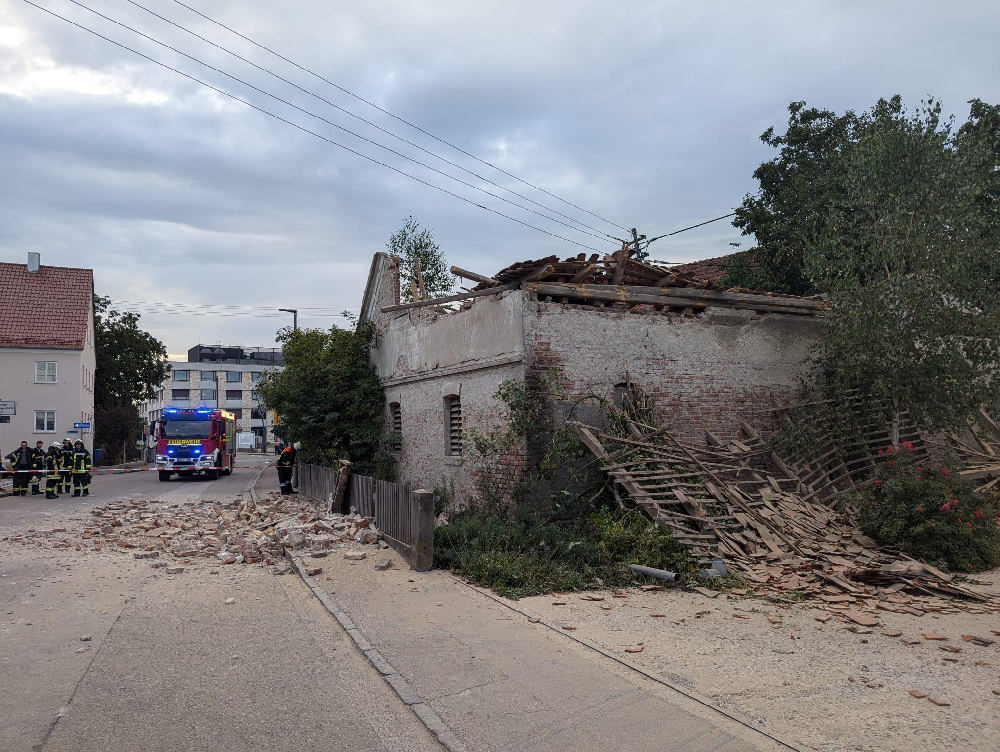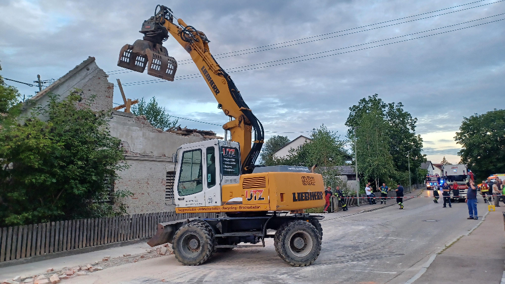 Ein Großaufgebot an Rettungskräften wurde am Samstagabend in die Dr.-Steichele-Straße alarmiert. Dort war ein baufälliges Gebäude eingestürzt. Zunächst wurde gemeldet, dass ein LKW in das Gebäude gefahren sei und das Gebäude zum Einsturz brachte. Dies bestätigte sich nicht. Obwohl Trümmerteile auch auf den Gehsteig und die Straße fielen gab es glücklicherweise keine verletzten Personen zu beklagen.