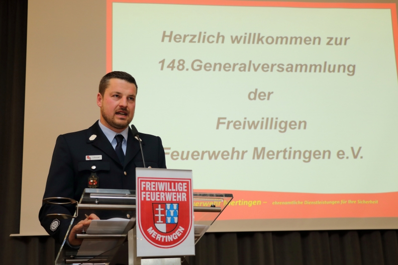 Im Saal der „Alten Brauerei“ konnte 1. Vorsitzender Stephan Kreuzer neben zahlreichen Mitgliedern auch den 2. Bürgermeister der Gemeinde Mertingen Hans Mair und Ehrenkreisbrandinspektor Georg Riehl zur 148. Generalversammlung begrüßen.