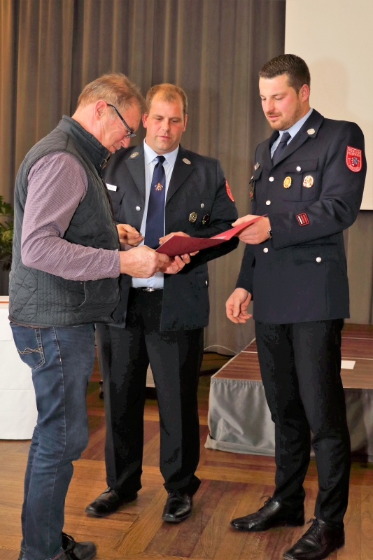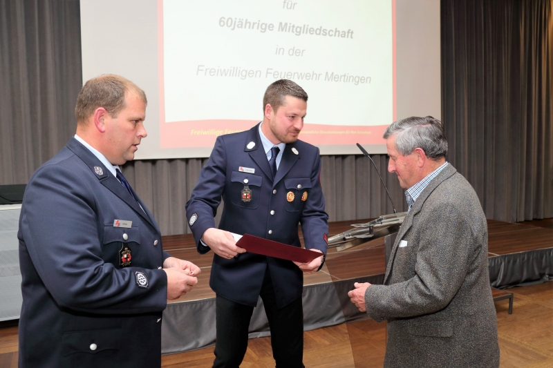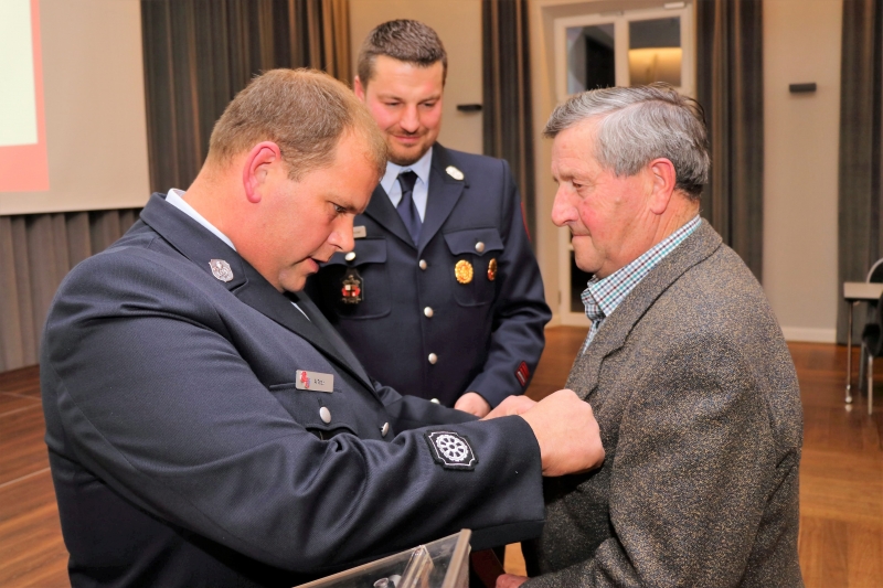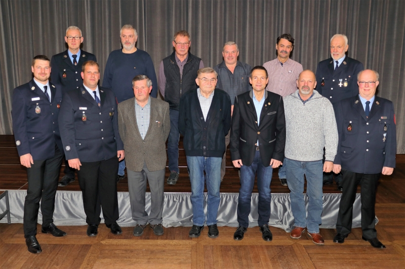 Mit einer Urkunde und einer Anstecknadel für 25 Jahre im Feuerwehrverein wurden Alexander Fiebig und Anton Schuster geehrt. Für 40 Jahre Mitgliedschaft Georg Dietrich, Hans Dietrich, Paul Hopfner, Josef Killisperger, Leonhard Kreuzer, Georg Mair, Roland Nisseler, Hannes Schweihofer, Hermann Sulzer, Alfred Völk, Martin Völk jun., Herbert Waschulzik und Josef Zimmermann ausgezeichnet. Für 50 Jahre Theo Bschorer, Philipp Heindl, Martin Müller, Josef Schuster, Josef Schweihofer und für 60 Jahre erhielt Josef Völk eine Auszeichnung.