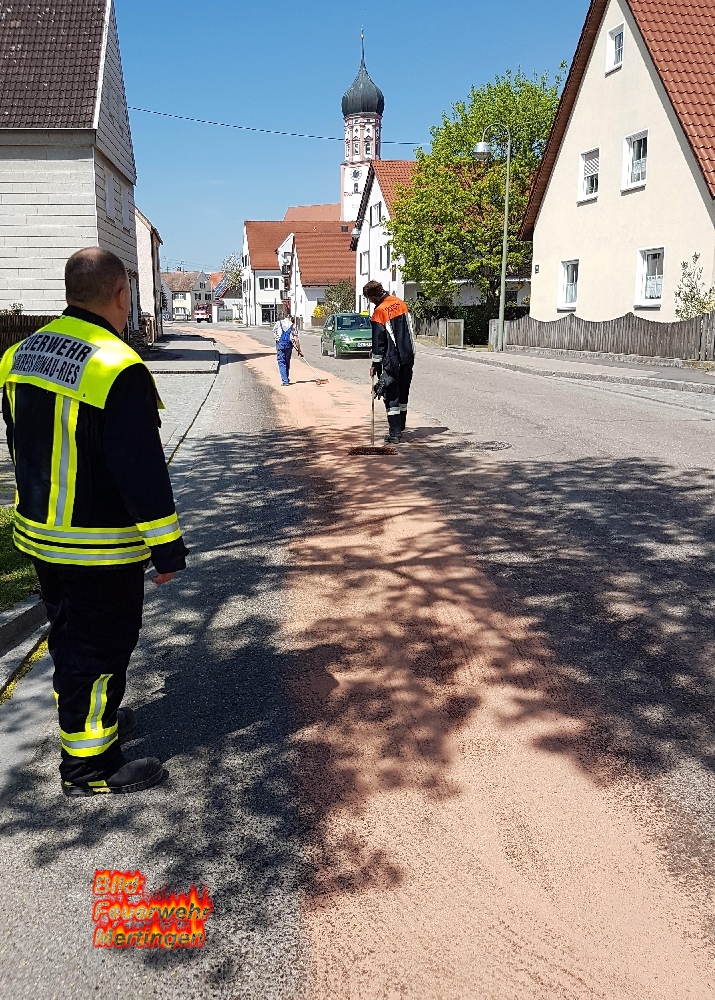 Aufgrund eines technischen Defekts verlor am Freitagmittag ein Traktor in der Hilaria-Lechner-Straße eine große Menge an Motorenöl. Die Feuerwehr streute die ca. 500 Meter lange Ölspur mit Ölbinder ab. Ebenfalls wurde in dem betroffenen Bereich die Kanalschächte auf Ölverunreinigungen kontrolliert. Ein Kommunalunternehmen nahm den Ölbinder mit einer Kehrmaschine wieder auf und der Kreisbauhof stellte Ölspurschilder auf. Während der Reinigungsarbeiten musste die Hilaria-Lechner-Straße für ca. 1,5 Stunden halbseitig gesperrt werden.