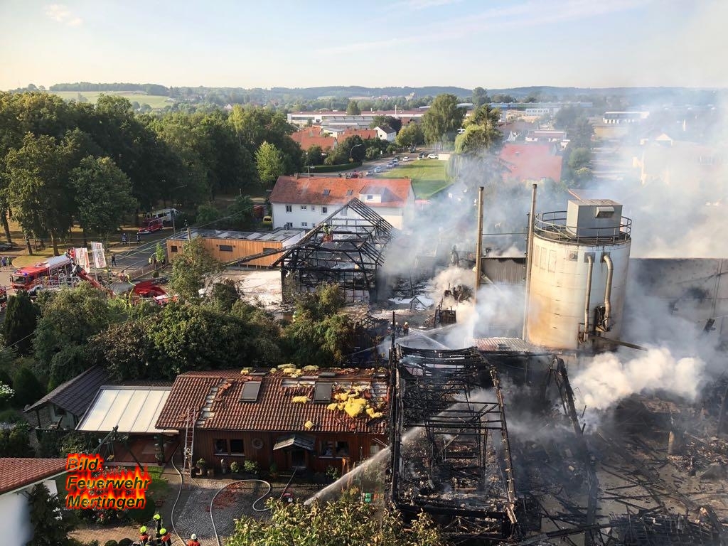 Zur Unterstützung bei einem Großbrand wurde heute früh unter anderem die Feuerwehr Mertingen nach Pfaffenhofen an der Zusam nachalarmiert. Die Halle eines holzverarbeitenden Betriebs und mehrere Gebäude außen herum standen in Vollbrand.