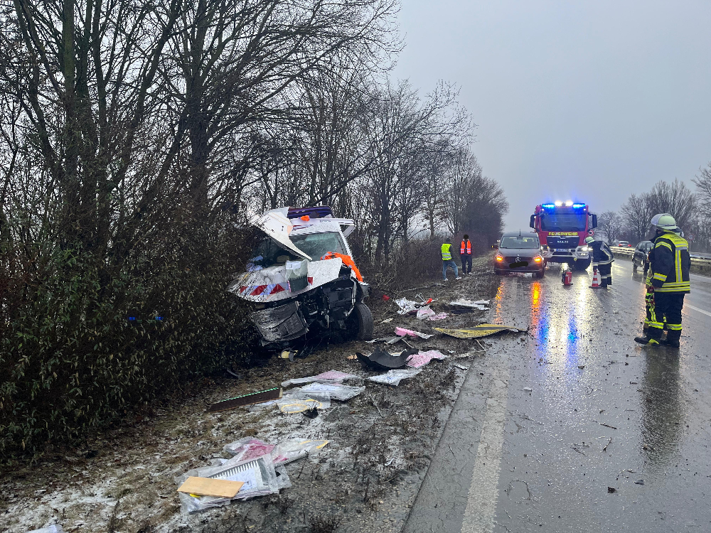 Auf der Bundesstraße 2 ist zwischen den Anschlussstellen Mertingen und Bäumenheim Süd ein Kleintransporter von der Straße abgekommen und in die Buschreihe geknallt. Der Fahrer wurde dem ersten Anschein nach nur leicht verletzt und konnte das Fahrzeug selbstständig verlassen. Der Rettungsdienst brachte die Person zur weiteren Untersuchung in eine Klinik.