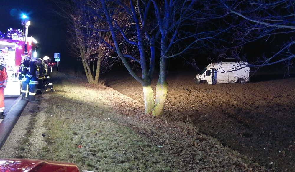 Der Fahrer eines Transporters, der in Richtung Augsburg unterwegs war, kam kurz nach Mertingen mit seinem Fahrzeug nach rechts von der Fahrbahn ab, streifte einen Baum, überschlug sich und kam im angrenzenden Acker wieder auf den Rädern zum Stehen. Der Fahrer verletzte sich dabei, konnte sein Fahrzeug aber selbstständig verlassen und wurde vom ebenfalls alarmierten Rettungsdienst in eine Klinik gebracht.