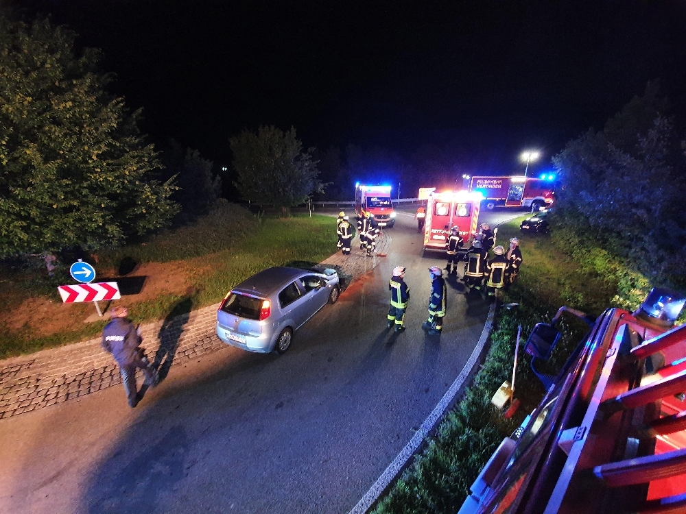 Am Kreisverkehr an der B2 ereignete sich in der Nacht zum Freitag ein Verkehrsunfall mit 2 Fahrzeugen. Dabei wurden 4 Personen verletzt.