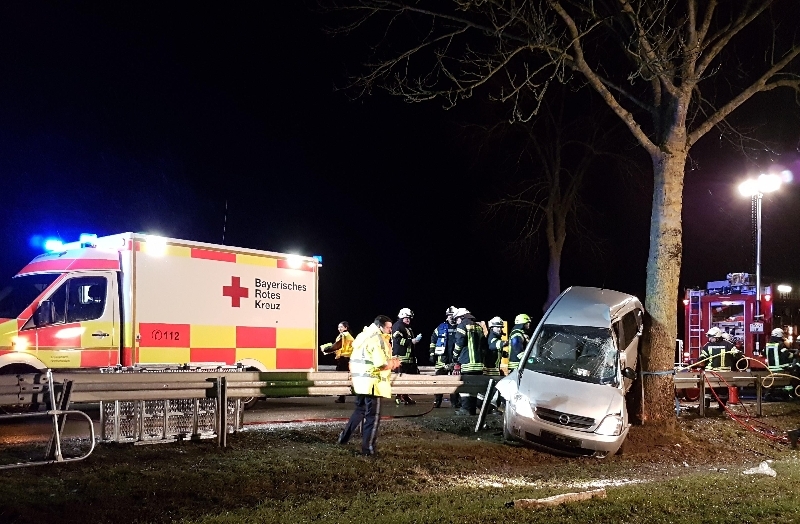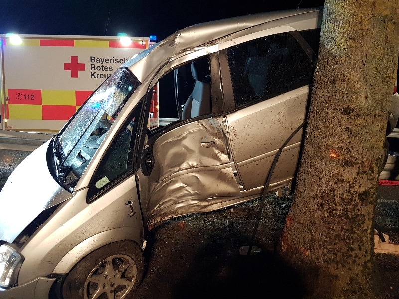 Ein PKW ist auf der Kreisstraße, kurz nach Biogasanlage, nach rechts von der Fahrbahn abgekommen, fuhr auf die dort beginnende Leitplanke, drehte sich und prallte mit der Fahrerseite gegen einen Alleebaum. Dabei zog sich der Fahrer schwere Verletzungen zu und wurde in seinem Fahrzeug eingeschlossen. Die alarmierte Feuerwehr musste schweres Gerät einsetzen um den verunfallten Fahrer aus seinem Auto befreien zu können.